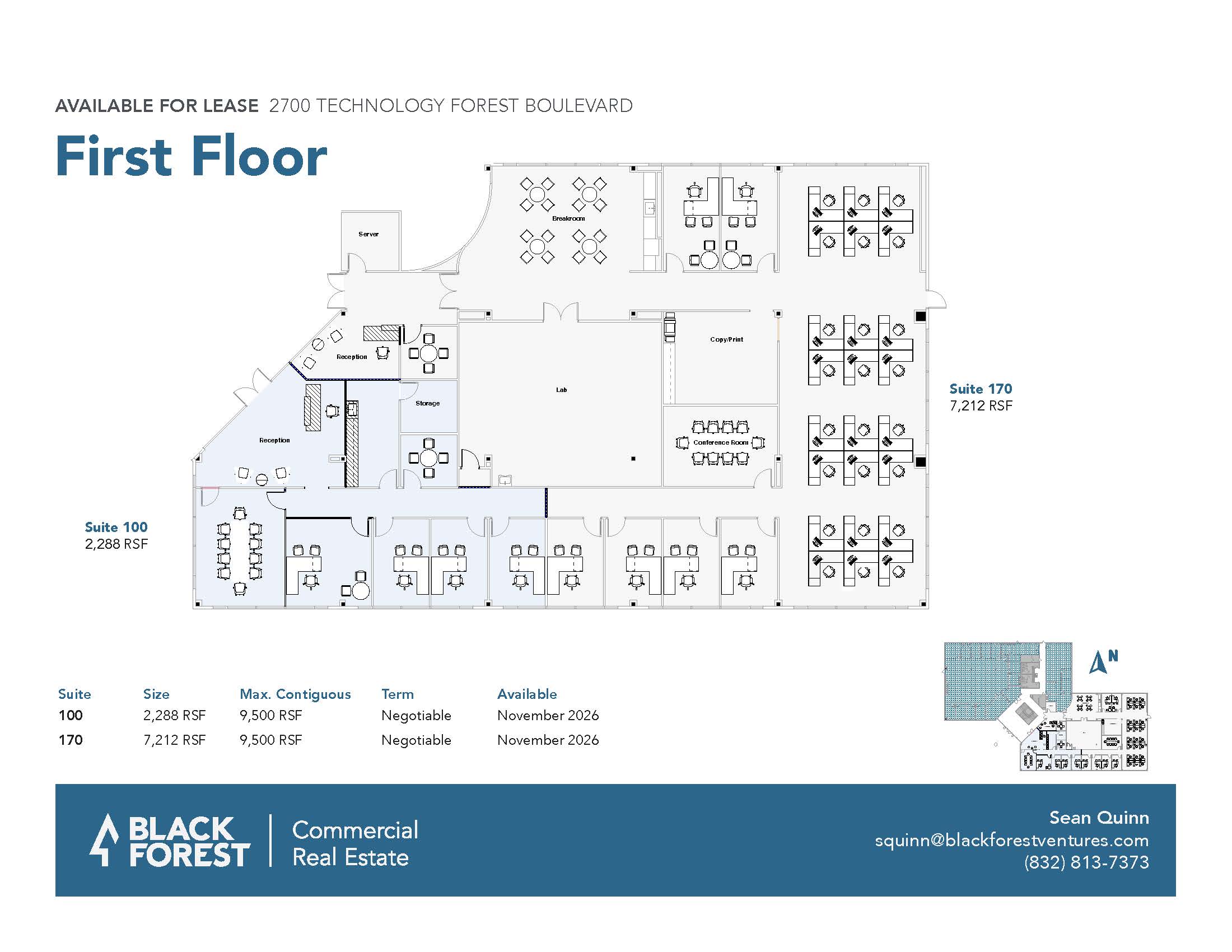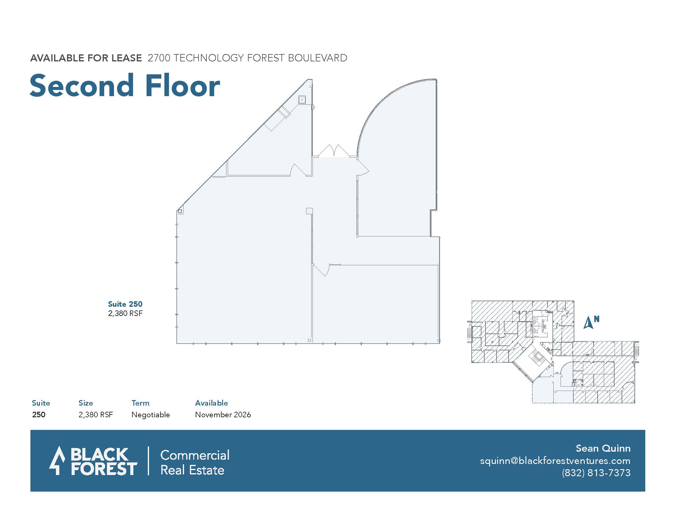 2700 Technology Forest Blvd building is within the Black Forest Technology Park, located on Technology Forest Boulevard, just off Research Forest Drive. Research Forest Drive is one of the main arteries in The Woodlands, located less than 2 miles west of Interstate 45.
