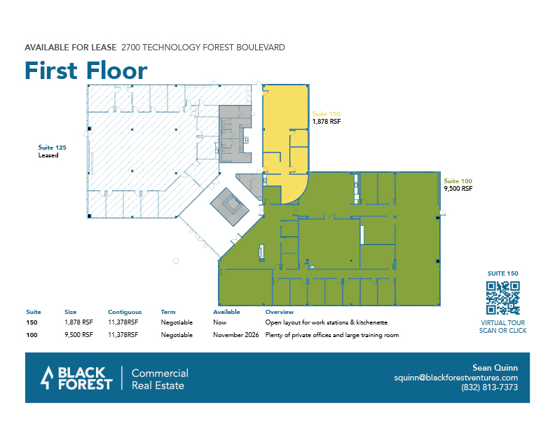 Coming Soon! This 9,500 RSF space will be available in November 2026, and can be combined with Suite 150 to offer 11,378 RSF contiguous space.