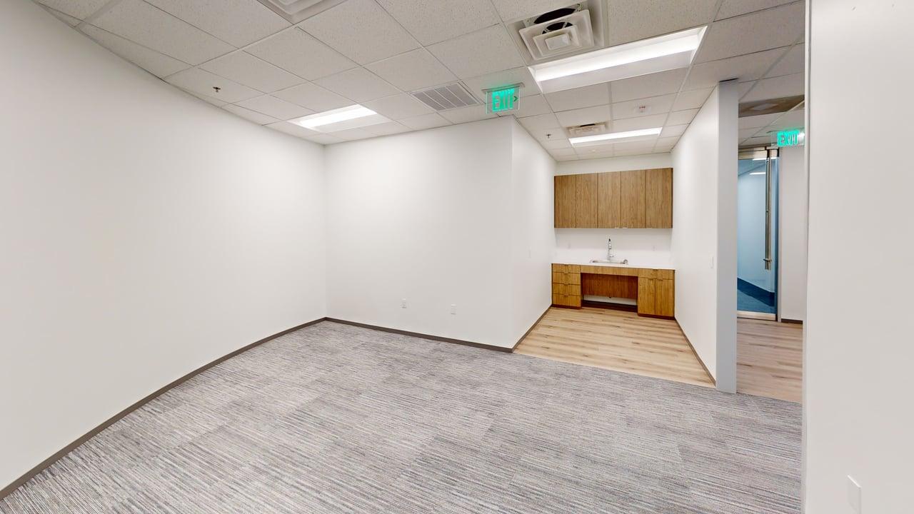This suite is ready to move in, offering open workspace with a kitchenette.